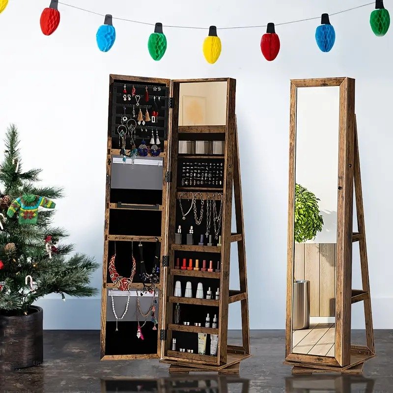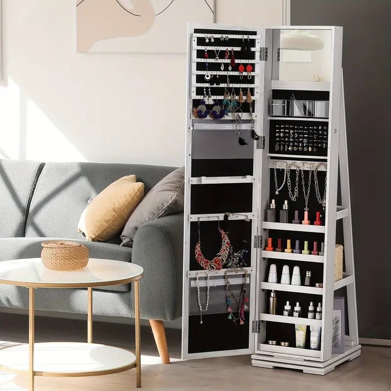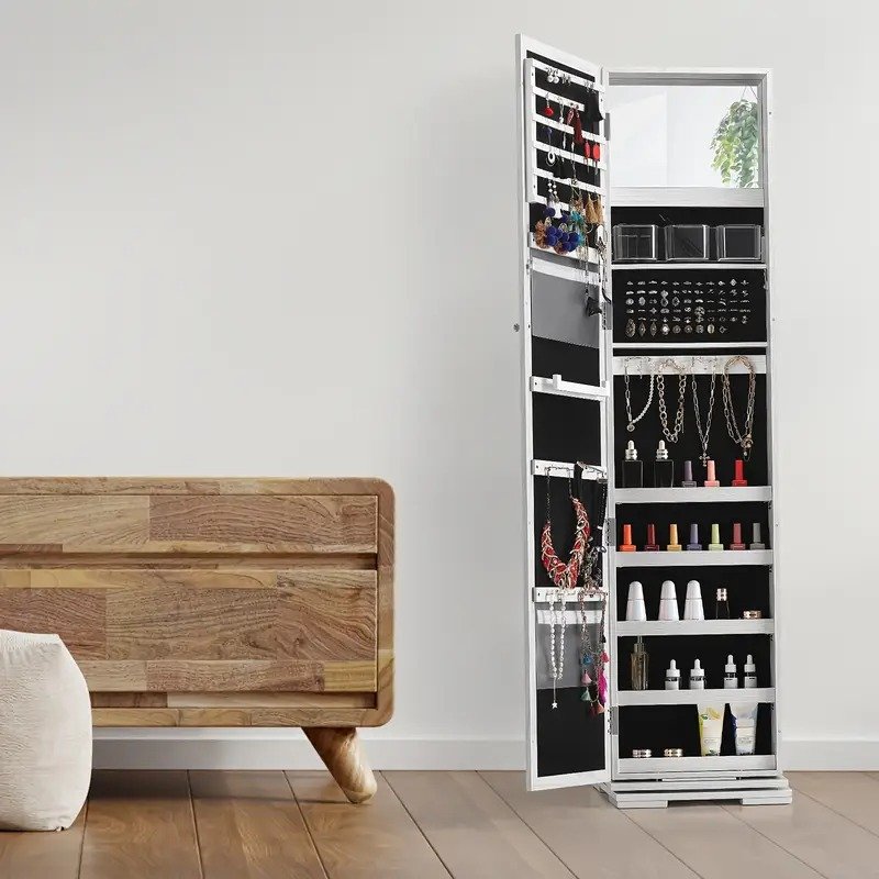 Goditi il doppio vantaggio di un armadio portagioielli e di uno specchio in un unico mobile.